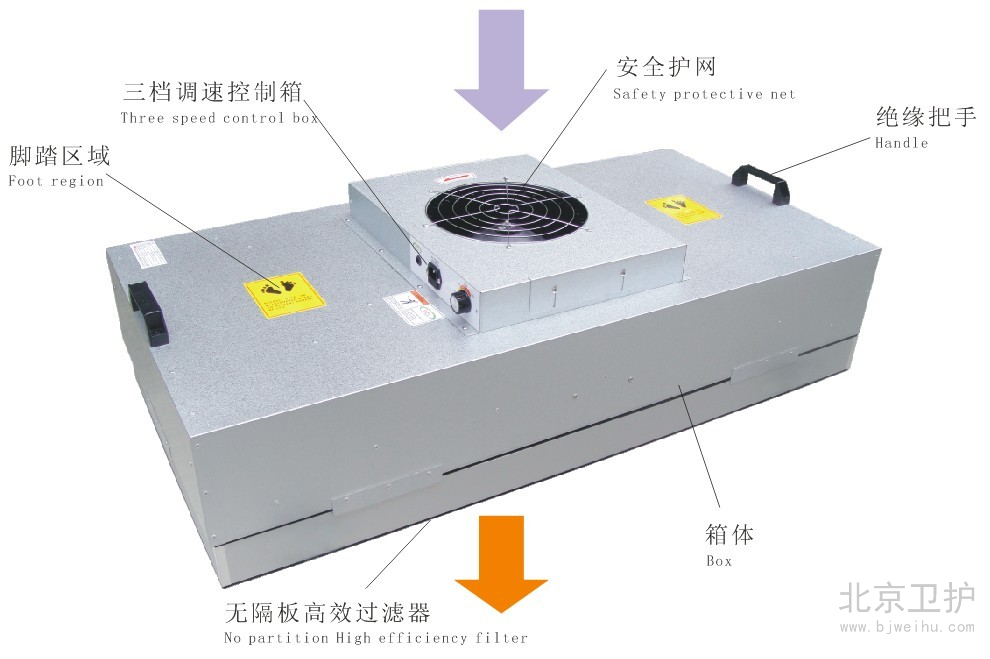 風機過濾單元是一種內配風機的吊頂用機組,用于亂流及層流潔凈室內,該機組設計整體靈活,根據設計的規格,它可以輕易地配合任何吊頂骨架,以達到潔凈等級1000級至1級要求。風機過濾單元是潔凈市場上其中一種最安靜、價格優良的機組。采用這種機組,可以為潔凈室輸送高質量空氣。而且空氣流形好,它適用于半導體,電子、平板顯示器和磁盤驅動器的廠家及光學、生物工業等行業應用于潔凈室、潔凈工作臺、潔凈生產線、組裝式潔凈室和局部百級等場合及其它對空氣中污染有嚴格控制要求的地方低耗能,降低運行成本。
